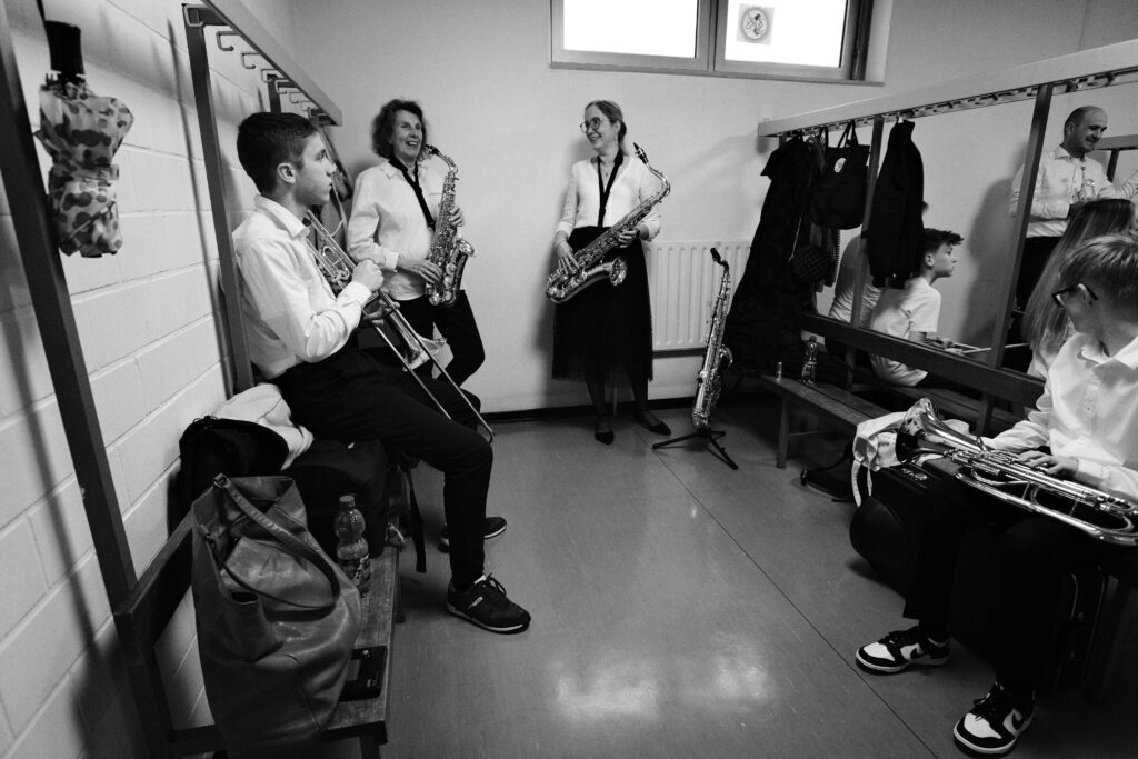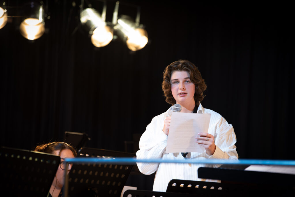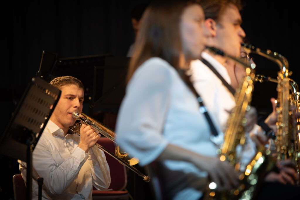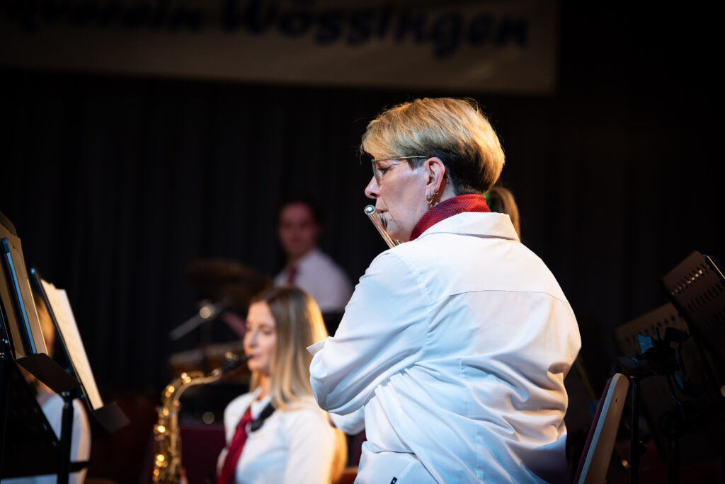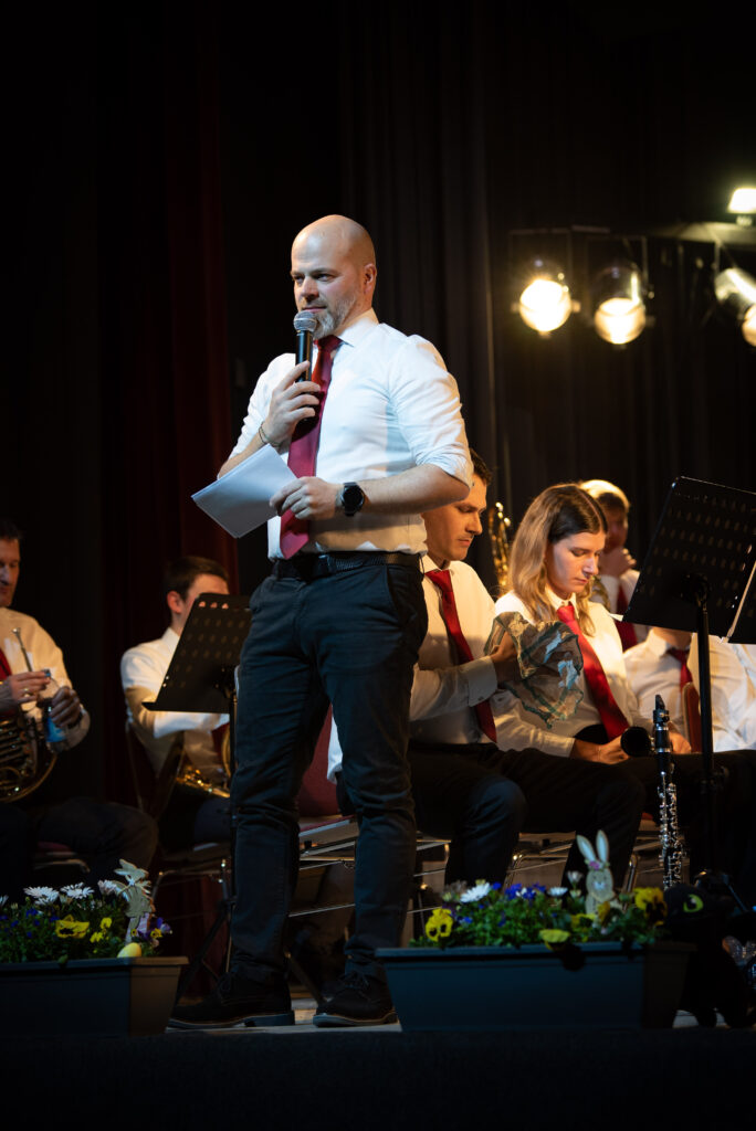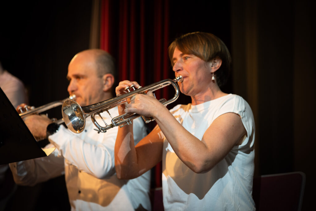 Nach der Pause entführte das Orchester das Publikum an den Wolfgangsee direkt ins Hotel Weißes Röss`l im 3/4 Takt durch die Welt von Zahlkellner Luitpold und die Geschichten des Hotels. Der Musikverein hat das Glück über ein hervoragendes Arrangement von Siegfried Riedle zu verfügen, das dem Orchester und der Dirigentin jedoch einiges an Einfühlungsvermögen und Empathie abverlangte. Aus dem beschaulichen Salzkammergut auf die große Showbühne, mit „Suite from the Greatest Showman“ wurde die Große Bühne eröffnet. Mit „Never Enough“, „This Is Me“ und „From now on“ erklangen bekannte Melodien gespickt mit gefühlvollen Soloparts im Tenorsaxophon und Flügelhorn.