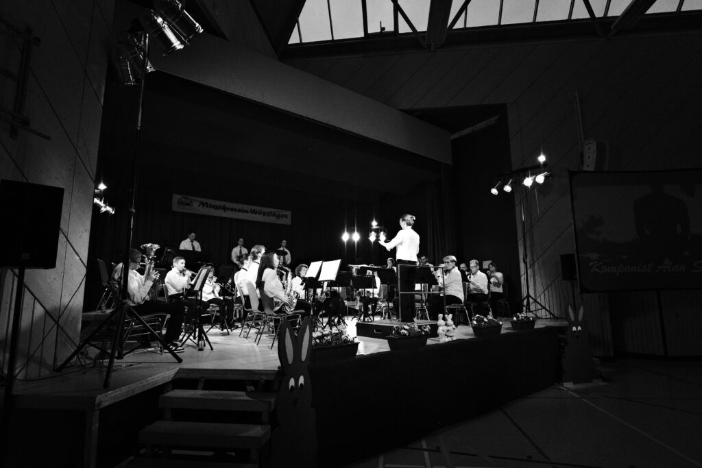 Ostersonntag 19:30 Uhr, traditionell beginnt genau jetzt das alljährliche Osterkonzert des Musikvereins Wössingen in der Böhnlich-Halle Wössingen. Die Halle ist voll besetzt und man spürt die Anspannung und Vorfreude förmlich im Raum. Ein völlig neu formiertes Orchester nimmt Aufstellung, um die Bühne für sich zu erobern. Der Musikverein hat erst im Januar, ein Projektorchester ins Leben gerufen. Es besteht aus Jungmusikern, Eltern, ehemaligen Musikern, aus Menschen die über Jahre ihr Instrument nicht mehr regelmäßig nutzten und nun die Chance nutzten beim Musikverein wieder Teil eines Orchestern sein zu dürfen, ohne dass daraus ein Verpflichtung entsteht. Das Ziel ein Konzert auf der großen Bühne zu spielen. Nach zehn Proben war es nun soweit. Unsere Dirigentin des Projektorchester, Karin Melcher, ließ es dann auch gleich mit durchaus anspruchsvollen Stücken krachen. Mit dem Thema Filmmusik, das sich der Musikverein dieses Jahr auf die Fahnen geschrieben hat, ist das Helden Epos natürlich schon gebucht, und der erste Held betrat auch gleich mit dem „Captain America March“ die Bühne. Selbstsicher und Souverän pflügte sich das Orchester durch die Noten und brachte beim ersten Stück schon, das Publikum auf seine Seite. Danach folgte der Filmscore „The Incredibels“ einem Animationsfilm bei dem die ganze Familie der Hauptfiguren Superkräfte besitzt. Superkräfte die auch die Musiker dringend benötigten, um die schnellen Achtelsequenzen des Stückes zu meistern. Doch unter der Leitung der Dirigentin Karin Melcher übersprang das Orchester alle Klippen des Stücks erfolgreich. Danach wurde es kriminell und die „Crimebusters“ schlugen unerbittlich zu. Fälle von „Mission Impossible“, „Secret Agent Man“ oder „Dragnet“ wurden nicht nur zu aller Zufriedenheit, sondern mit Bravour gelöst. So lies das Publikum das Projektorchester nicht ohne eine Zugabe von der Bühne. Dabei ließ Karin Melcher das Publikum einen tiefen Blick in das „Eye oft the Tiger“ schauen und verabschiedete sich, damit von der Bühne.