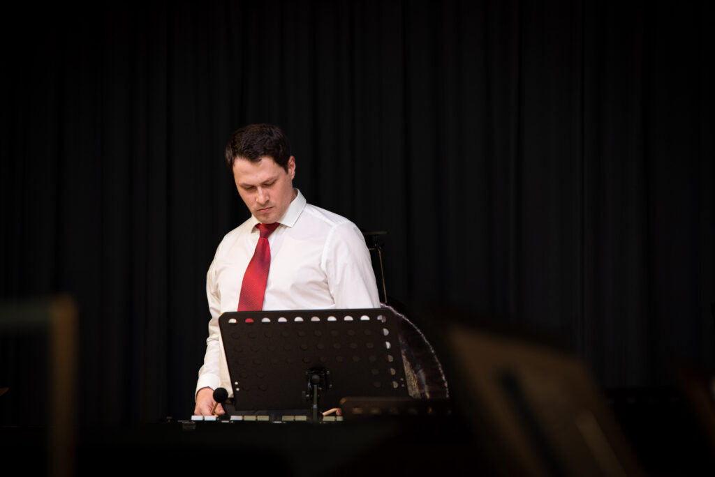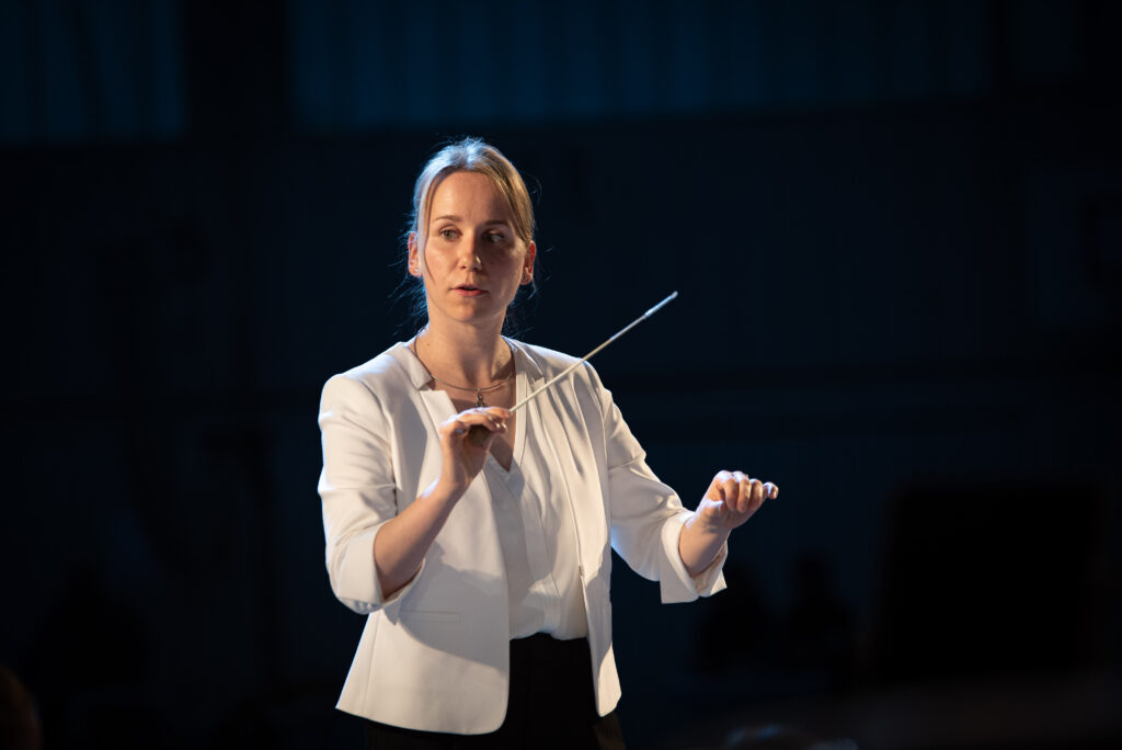 Nach einer kurzen Umbaupause betrat das große Blasorchester die Bühne der Filmmusik. Mit „How to train your Dragon“ startet das Orchester die Filmreise. Moderator Hannes Schneider witzelte noch, dass Drachen zähmen eine scheinbar leichte Aufgabe ist gegenüber der, das Orchester im Zaum zuhalten. Doch das Orchester zähmte das Stück und Dirigentin Judith Bühler zähmte erfolgreich das Orchester. Mit den „Highlights from La La Land“ bog das Orchester ins Film-Genre des romantischen Musical-Dramas ab und spielte sich mit viel Gefühl durch die leichten und tänzerisch Träumereien der Hauptdarsteller. „Bond…James Bond“ unterbrach die romantische Stimmung knallhart. Mit den markanten Akkorden aus E-Moll, E-Moll(b6), E-Moll(6) und schließlich dem dissonanten E-Moll(maj9). Der typische Bond Klang entsteht durch die Kombination aus Moll-Dreiklang und einer großen Septime (Major 7). So dozierte Hannes Schneider bei der anmoderation des Stückes, das eigentlich keine Ansage benötige. Schon nach den ersten Akkorden weis jeder, dass im nächsten Moment 007 um die Ecke biegen wird. Das tat er dann auch direkt markant, selbstbewusst und immer im dienst der Krone. Das Orchester musizierte elegant durch „Goldfinger“, „Skyfall“ oder „Live and Let Die“ und wurde mit viel Beifall aus dem Publikum bedacht. Vor der Pause wurden nochmals echte Superhelden benötigt. Die Avenger betraten die Leinwand und der volle Einsatz des Orchesters war gefordert, um den Helden gerecht zu werden. Heldenhafte Oktavsprünge im Hornregister, atemberaubend volles Volumen im tiefen Register und Trompeten flutet den Saal. Doch es gab noch weitere Helden im Holzregister die sich tapfer und mutig durch den anspruchsvollen Rhythmus der Avenger´s kämpften.